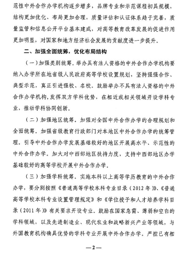 教育部关于进一步加强高等学校中外合作办学质量保障工作的意见